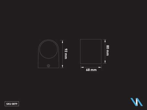 IP44 sealing, dim. 92 x 68 x 80 mm, material aluminum and glass diffuser, mounting included, GU10 fitting, bulb not included, suitable for indoor and outdoor use, one bulb input, voltage 220-240V, max 35 watt, SKU 00879