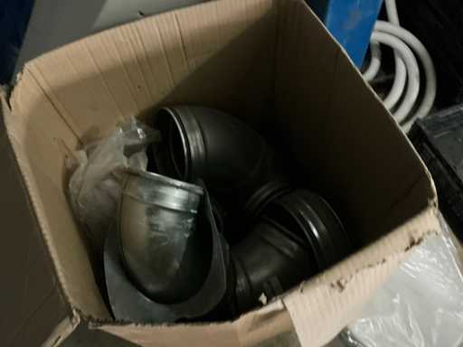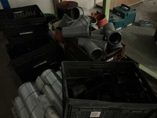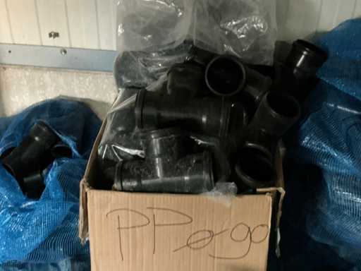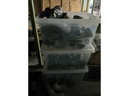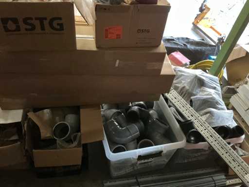 Large batch of various PVC connectors including dia 160mm and 90mm, including bends, T-pieces and reductions,