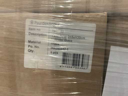 2 palety ze szklanymi wazonami, w tym model Pelle D15xH25 cm i D15xH30, w tym palety.