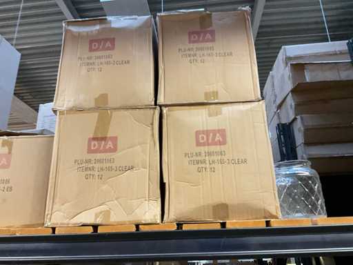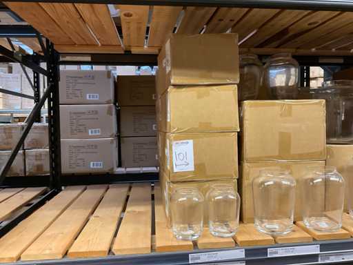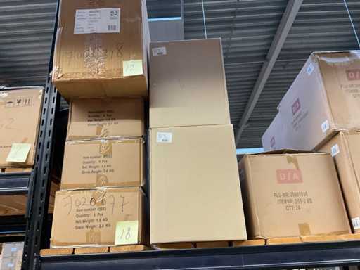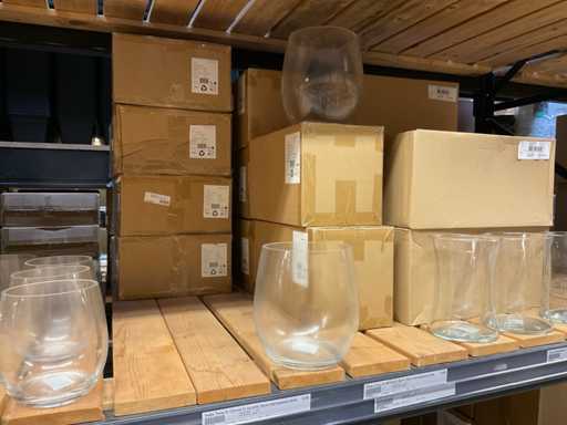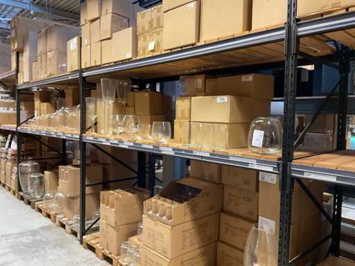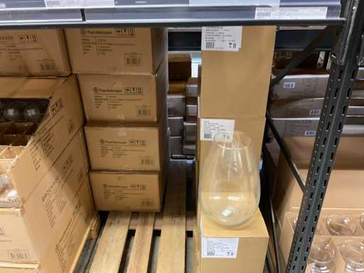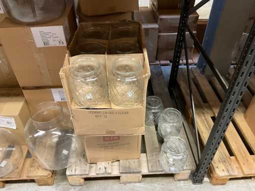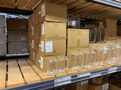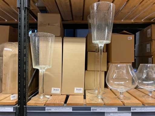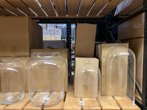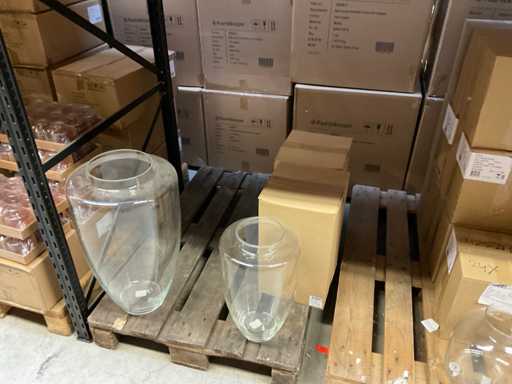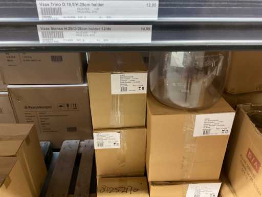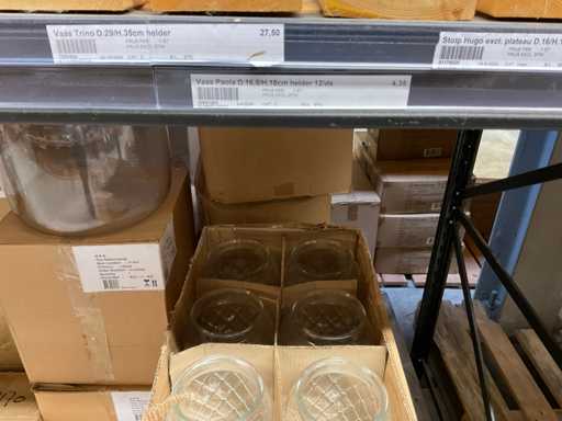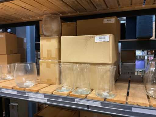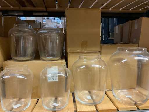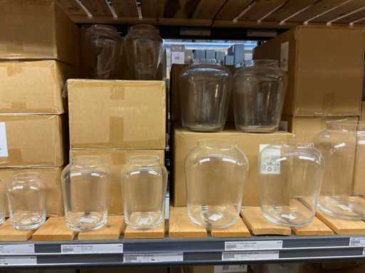 Różne wazony w 2 sekcjach stojaka w różnych kształtach, kolorach i rozmiarach.