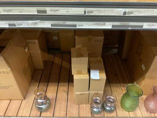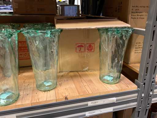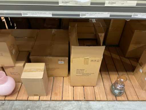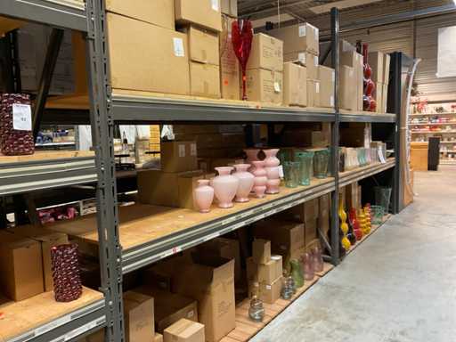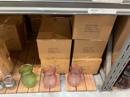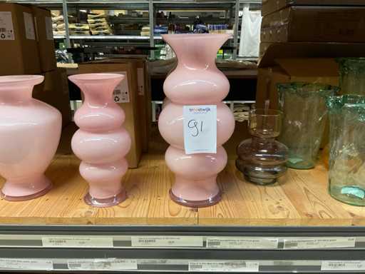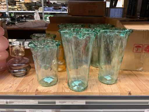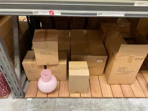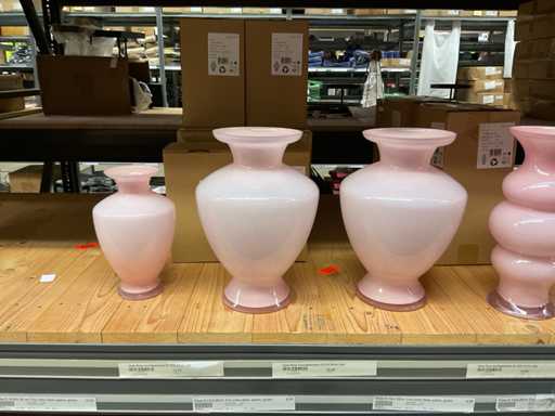 Różne wazony w 1 sekcji półki w różnych kształtach, kolorach i rozmiarach.