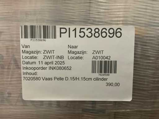 1 paleta z wazonami Pelle, D15/H15 cm, wraz z paletą.