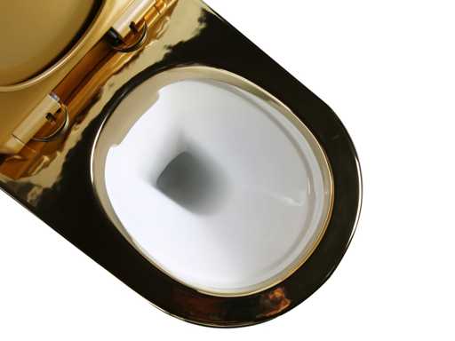 Żebrowane złote wykończenie ze złotą pokrywą, wymiary lxbxh 49x37x37cm, materiał ceramiczny i plastikowy, wymiary lxbxh 49x37x37cm, materiał ceramika i plastik, miękkie zamykanie deski sedesowej z pokrywką, syfon, waga 30 kg, spłukiwanie bez krawędzi (bez krawędzi spłukiwania), wyposażony w materiał montażowy, uniwersalnie stosowany w każdym wbudowanym zbiorniku, szybka pokrywa, toaleta odlewana i szkliwiona, a następnie hartowana w piekarniku, co czyni ją bardzo odporną na zarysowania