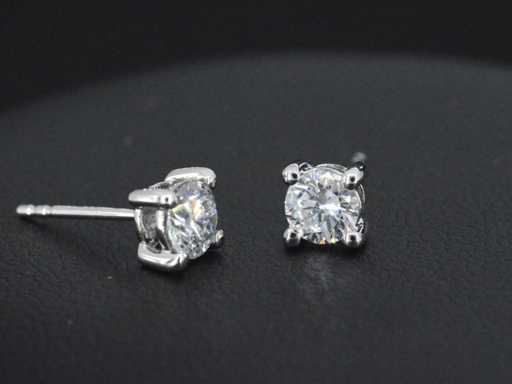 White gold solitaire earrings with brilliant cut diamonds of 1.22 carat