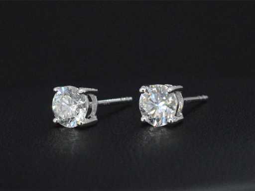 White gold solitaire earrings with brilliant cut diamonds 1.22 carat