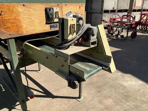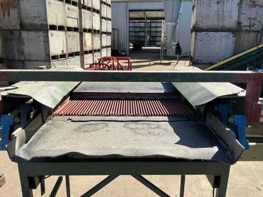wyposażony w wibrujący ekran, pas wyciskowy (szerokość robocza 300 mm) na regulowanej ramie.