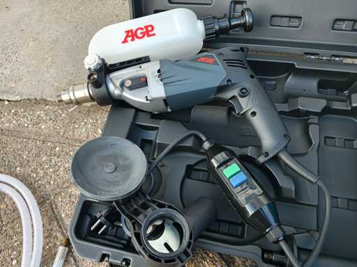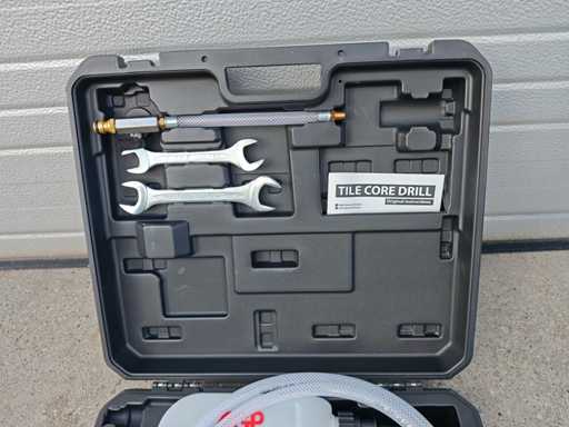 AGP Nowa stara wiertarka diamentowa z chłodzeniem wodnym, prowadnicą M14 i wlotem 1/2". Ten zestaw zawiera beczkę na wodę, PRCD, prowadnicę.