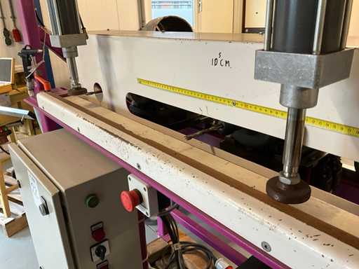 wyposażony w 2 wrzeciona, pneumatyczne zaciski do materiału,