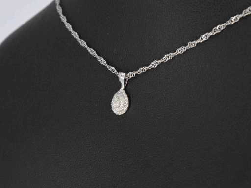 Wisiorek w kształcie kropli z białego złota z diamentami