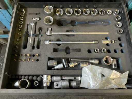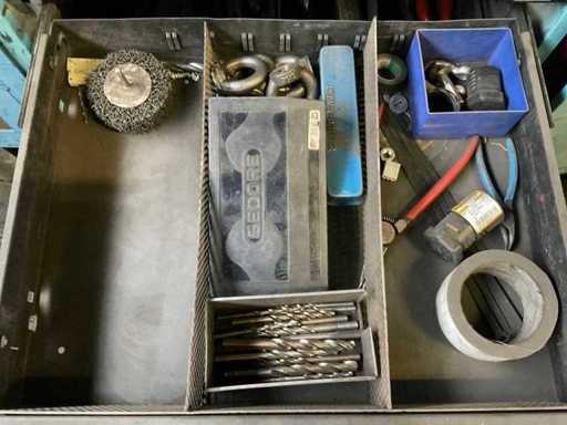 W tym różne narzędzia, w tym Szczypce, klucze, śrubokręty, zestaw nasadek, młotki.