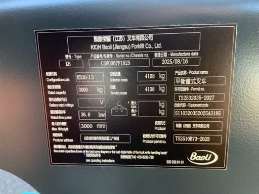 Wózek widłowy Baoli/Kion KB30-L3 z 2025 roku