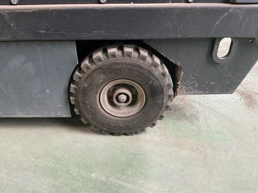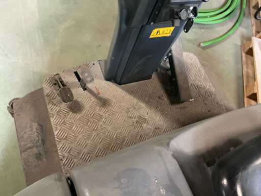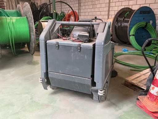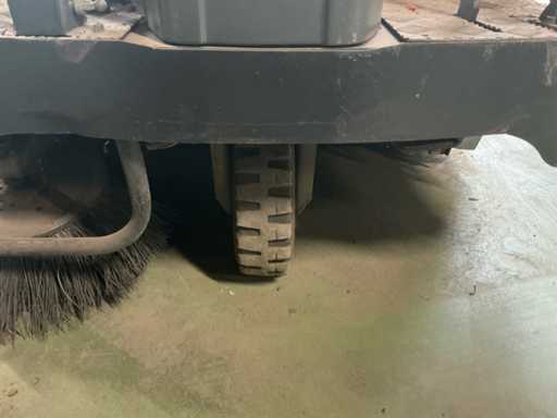 Maszyna jedzie, ale wydobywa się dym. Bateria jest rozładowana, działa. Maszyna posiada mechaniczną klapę na śmieci do rozładunku brudu.