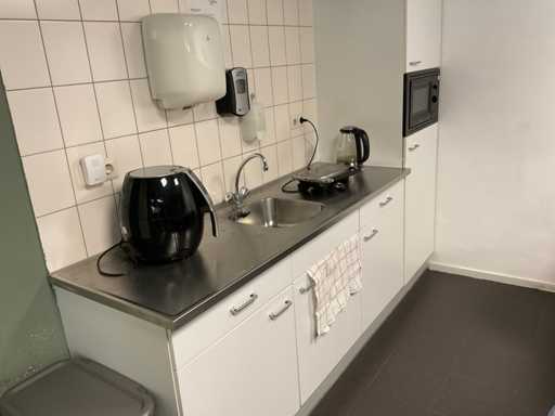 Składa się z aneksu kuchennego, stołu 270 x 120 x 77,5 cm, 7 krzeseł, modelu lodówki stołowej Liebherr z zamrażarką, spiżarni 120 x 45 x 140 cm. Frytkownica powietrzna, opiekacz do kanapek i czajnik. Parking znajduje się na 1. piętrze i nie ma windy.