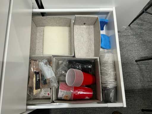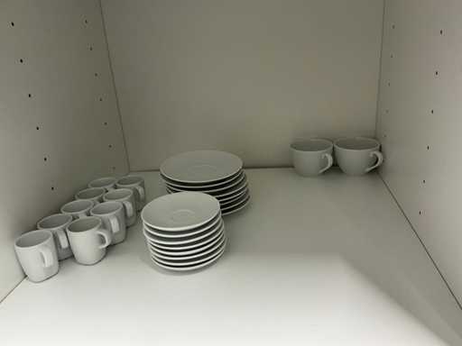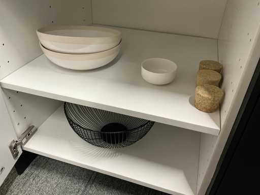Naczynia, sztućce, akcesoria do kawy i herbaty, kosz na śmieci Brabantia, wieszak na ubrania i wieszaki na płaszcze. Działka 1 i naprawione części kuchenne nie są w zestawie.