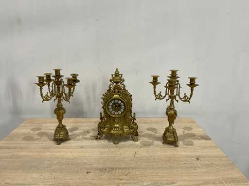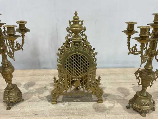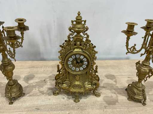 zegar o wysokości około 42 cm; świeczniki o wysokości około 41 cm