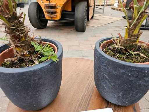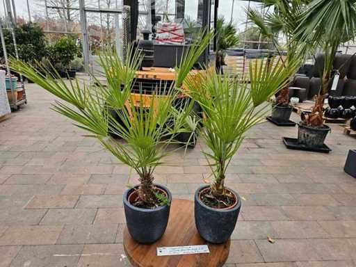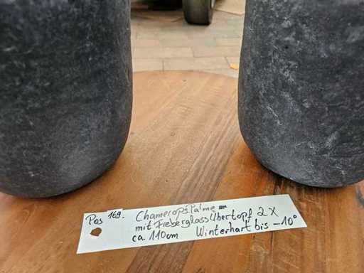 Zestaw 2 karłowatych palm Chamaerops humilis w donicach z włókna szklanego – Hardy