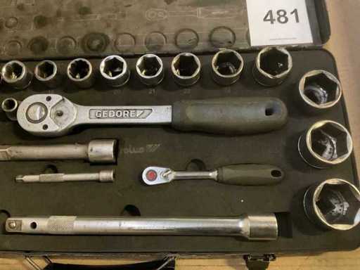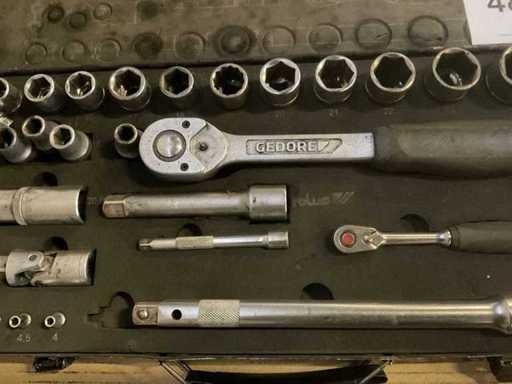 Klucz nasadowy Gedore w metalowej skrzynce magazynowej, od 4 do 34 mm