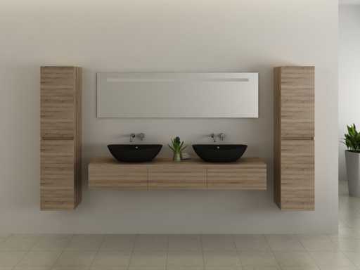 Typ: BL-9009-M30-BOK-. Meble łazienkowe składają się z 6 pudełek o następujących wymiarach: 1 * Meble umywalkowe - 1800x470x250mm, 2 * umywalki - 590x385x190mm, 2 * szafki boczne - 1500x350x350mm, 1 * lustro - 1800x500x60mm. Meble łazienkowe wyposażone są w: lustro z ekranem dotykowym LED i technologię przeciwmgielną - krany z wysuwanym odpływem - system miękko zamykanych szuflad - ceramiczne umywalki - gotową umywalkę.