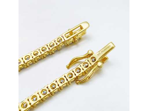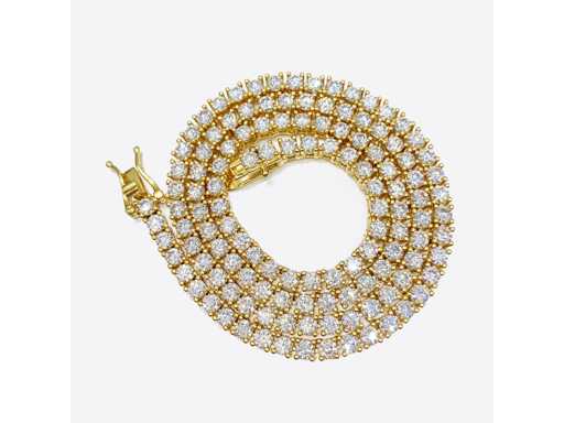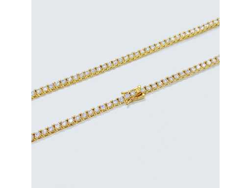 Klejnot Szlachetny: Moissanite; Ilość: 125 sztuk; Cięcie: Brilliant cut; Waga (karat): 12,50 karat; Kolor: D; Czystość: VVS; Jakość cięcia: Bardzo ładna; Klejnot: Collier; Marka: Harmony; Waga: 23 gramy; Wymiary/długość: 44 cm; Materiał: Vermeil wysokiej jakości srebro sterling (925); Stan zdrowia: Nowy; Pakowanie: szkatułka na biżuterię lub aksamitne pudełko; Wyjaśnienie: Jakość została zaczerpnięta z raportu dotyczącego przedmiotu. Wycena to ocena certyfikowanego dealera diamentów, oparta na cenach konsumpcjalnych; Dodatkowe informacje: Zmierzona waga kamieni szlachetnych jest według rozmiarów diamentów; Cena konsumencka: € 2 600