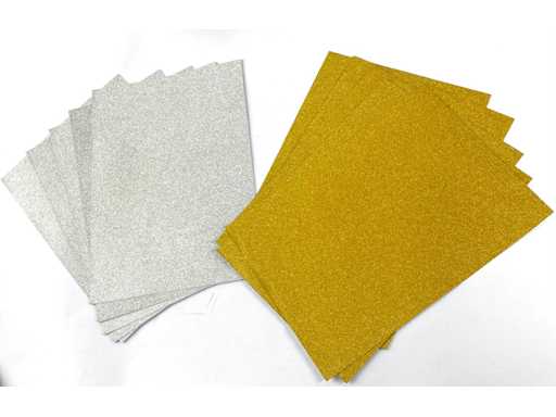 5. 575 seturi de 10 hârtii cu sclipici, 2 culori (5x auriu, 5x argintiu), dimensiune: A4, autoadeziv (Art.Nr. GH_ZAD40409-62, EAN: 4251325506654)