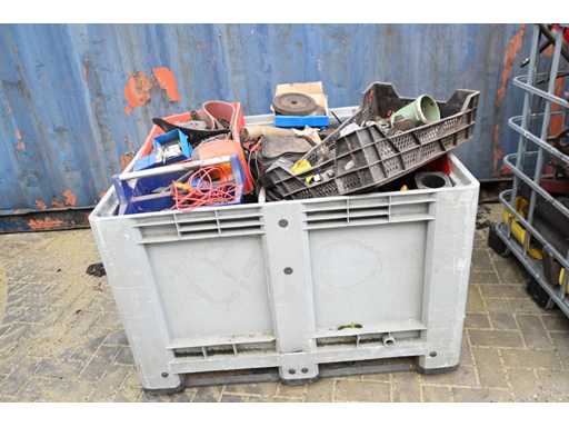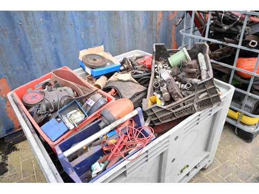 Conținutul constând în filtre, cupleri, unelte, inventar de atelier, rafturi, capace de roți etc. Fără container. Acesta este lotul 58.