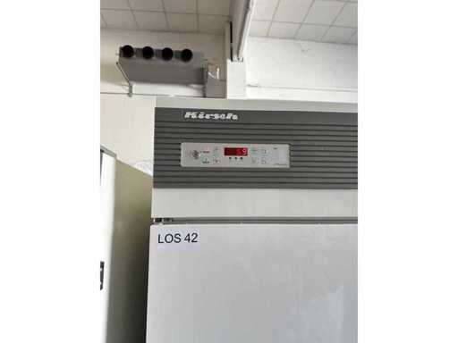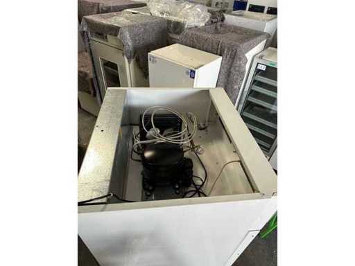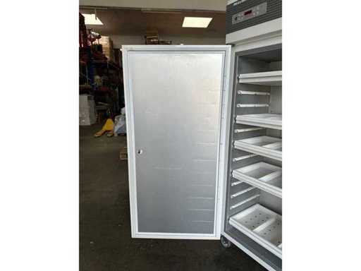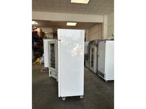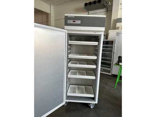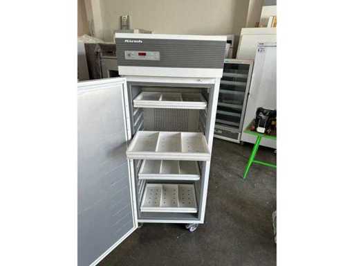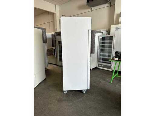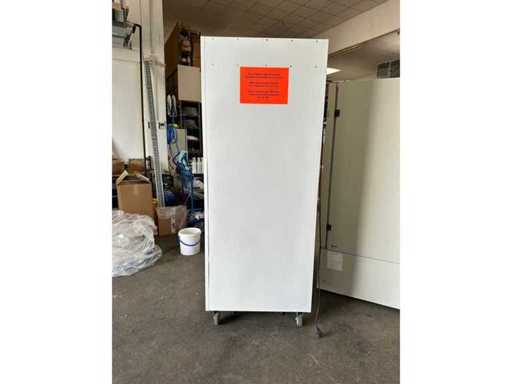 120 kg (net) Mobile version (4 wheels, the front 2 with brake) outer housing made of galvanized sheet steel (rust protection), white, powder-coated. Interior made of smooth aluminium with colourless protective coating. 4 medication drawers on roller thrust guides. Insulation 70 mm thick, made of high-quality, pressure-foamed and environmentally friendly material. Energy-saving due to special starch. Door with easily replaceable plastic magnetic seal frame, lockable. When the door is opened, there is no door overhang, so that any number of refrigerators can be placed close together. Circulating air cooling with cross-flow fan, which switches off automatically when the door is opened, ensures uniform temperature control and reduces the physically induced temperature gradient to a minimum. Rapid defrost via hot gas. Condensation evaporation in the refrigeration machine room. Control center protected by key switches with digital temperature display. Minimum/Maximum Temperature Storage. Visual and acoustic alarm signal in the event of temperature deviation with potential-free contact for connection to central control technology. Button for humidity selection, defrost indicator light and red warning light. RS 485 interface as standard. Temperature control by means of electronic temperature controller. The temperature is maintained automatically regardless of changing outside temperatures, chiller hermetically sealed, energy-saving, low-noise, easy to service, for 220-240 V alternating current, 50/60 Hz.
