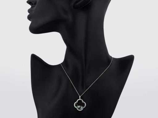 14 KT White Gold Necklace with Pendant With Natural Diamond and Swiss Blue Topaz and Chrome