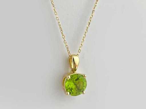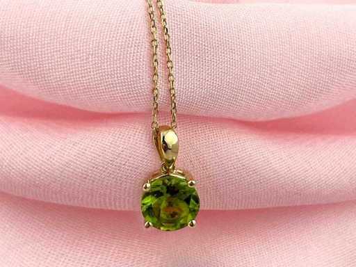 14 KT Yellow Gold Necklace with 1.94 Cts Pendant With Peridot
