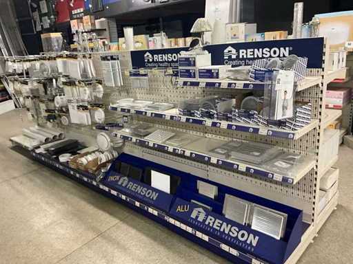 Echipat cu 56 de rafturi, lățime 100cm, adâncimi 35, 46, 56cm.