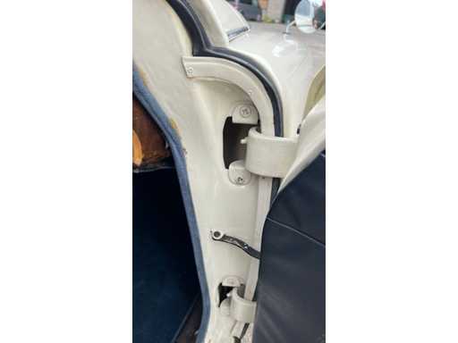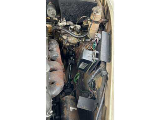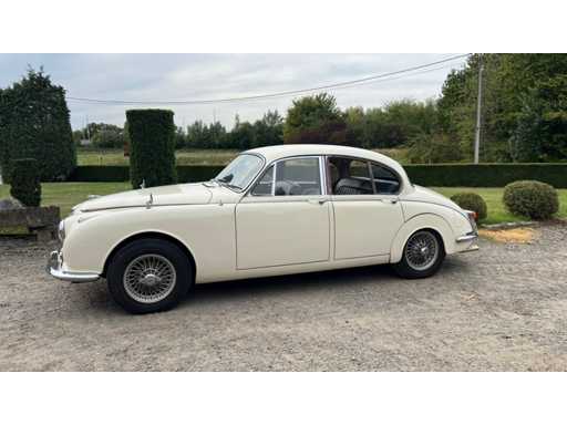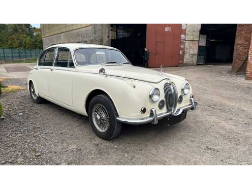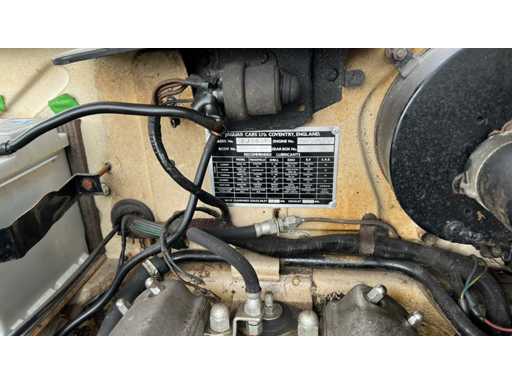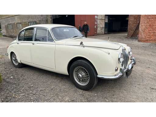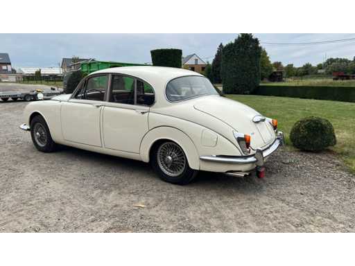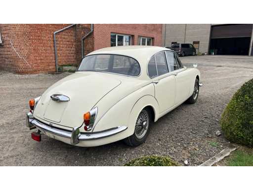Jaguar 240 from 1968 in very good condition. Engine needs to be restarted but is loose. Ignition key and papers are missing (certificate of loss of documents). Bodywork and interior in very good condition. Exterior: Original Old English White paint. Beautiful, straight body with correct chrome trims. Wire spoked wheels. Equipped with original fog lights and decorative strips. Mirrors on fenders (period correct). Interior: Original walnut dashboard with Smiths gauges. Black leather upholstery in original style. Original steering wheel with Jaguar emblem. Simple but authentic switch buttons, typical of late Mk2 models. Engine bay: XK6 engine with dual SU carburetors (clearly visible). Correct layout of ignition coil, fuel pump and air suction. Disc brakes on all wheels. Only 4400 copies made.