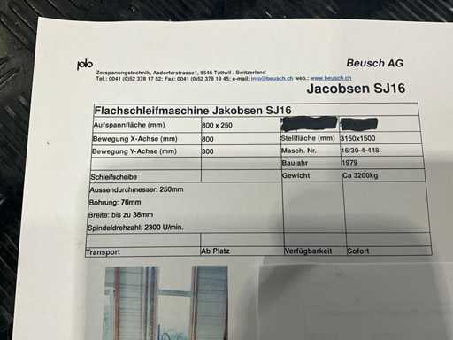 1979 Jakobsen SJ16 / 16 / 30-4-448 Mașină de șlefuit suprafață