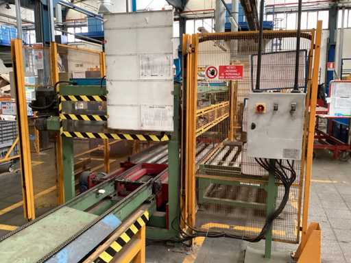 including vacuum lifter and scissor loading platform; Protective wire mesh