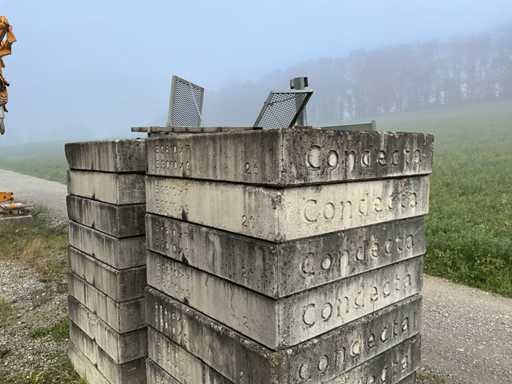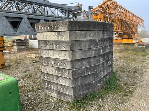 Cu 4 fundații de beton; Inclusiv 9 greutăți de macara de 2000 kg fiecare; Fără șasiu; Conform fotografiilor