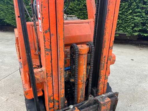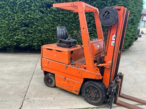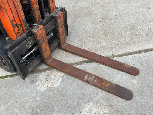 The forklift is in used condition with visible wear and tear and signs of wear, but forms a solid basis for those looking for a reliable machine. Please note: the battery is missing, so the forklift is currently not usable.