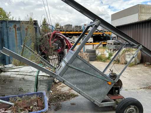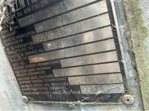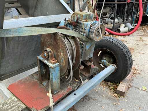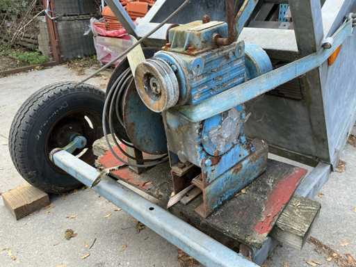 Construction hoist made of galvanized steel, can be transported, axle is not blocked! Lighting for transport still to be provided!