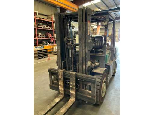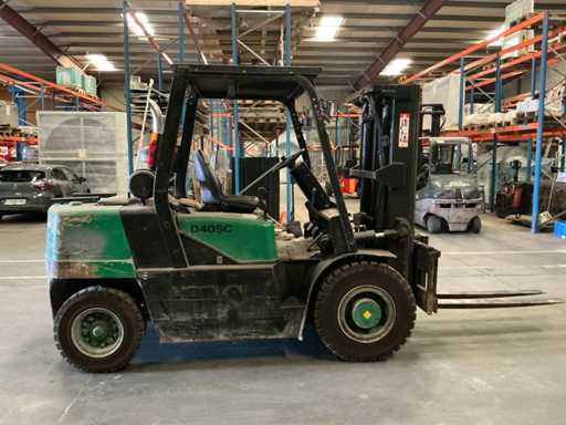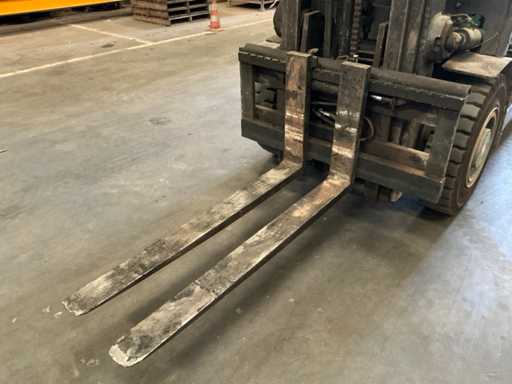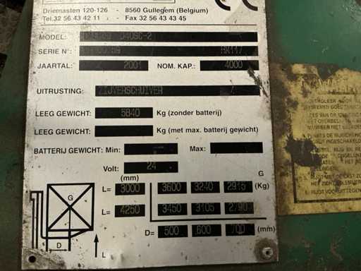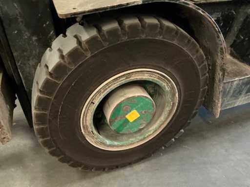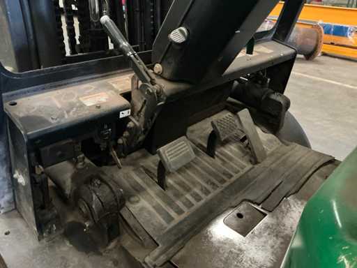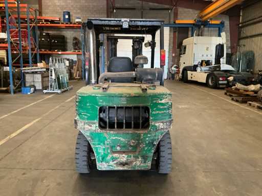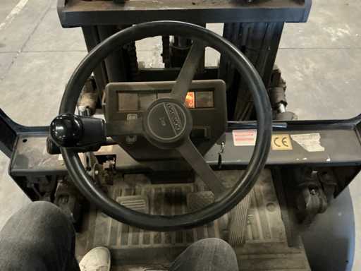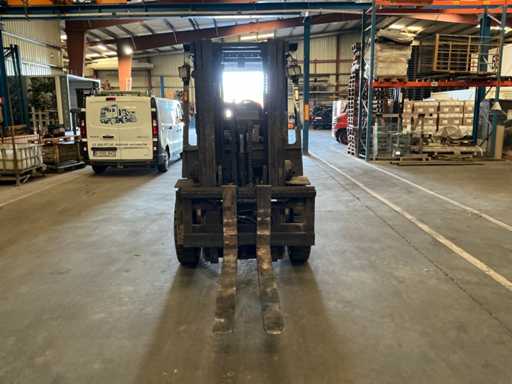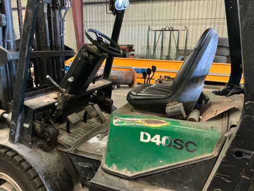 Oil leak. Forward acceleration is slow to respond. In working order. Equipped with side shifter.