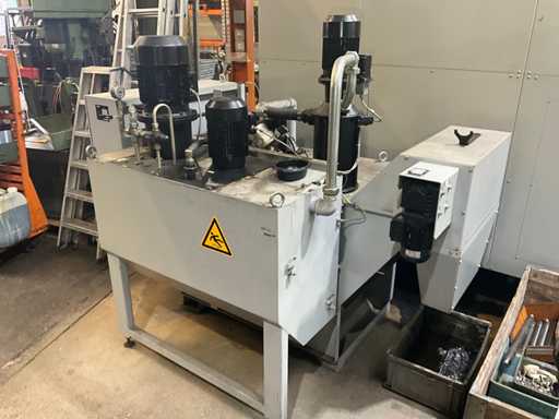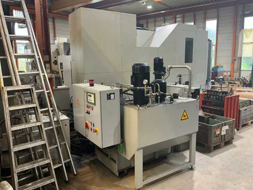 Cu schimbător de paleți de 3 ori, schimbător de scule 120 de locuri, sistem de măsurare "Renishaw cu sondă 3D tip MP 10", tratarea apei de răcire "Knoll", documente disponibile, fără suporturi și unelte, inclusiv unitate de putere hidraulică și accesorii, 1 palet cu material de transport, vezi fotografii pentru mai multe detalii