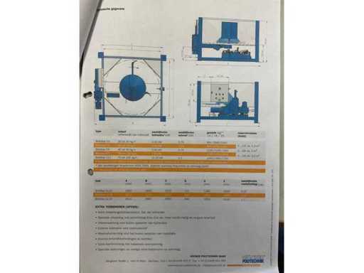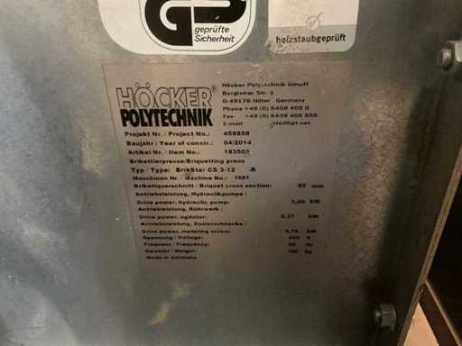 Echipată cu: presă brichetă Höcker Polytechnik, tip: Brikstar 3-12R, capacitate: 20-40kg pe oră, Pompă hidraulică motor: 3kW, dimensiunea silozului: 1200x1200x640mm, Capacitate a silozului: 100kg