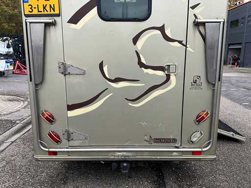 Geamuri și oglinzi electrice, Cruise Control, transmisie automată, aer condiționat, încălzitor de parcare Webasto, suspensie pneumatică, tapițerie din piele, caroserie de camion Morpheo, încărcător lateral 2 cai