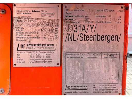grosimea peretelui 3 mm; capacitate 3000 litri; capac; ridicarea ochilor; fante pentru furci pentru stivuitor; alimentare și descărcare cuplare rapidă; pompă electrică; Starea de lucru neverificată