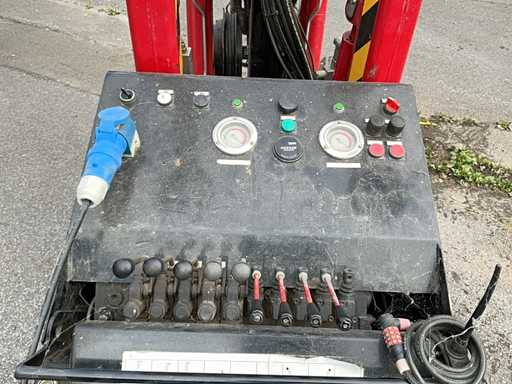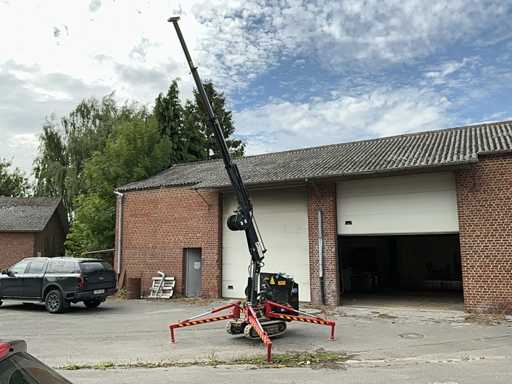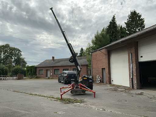 Spider crane in good condition, works with two motors: electric or thermal. Equipped with white tracks so as not to leave traces. The stabilizing feet are swivelling to allow the crane to pass through a narrow passage. Remote control included.