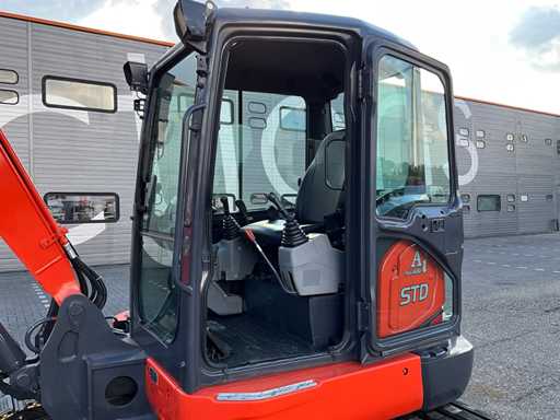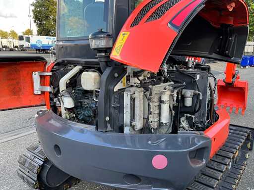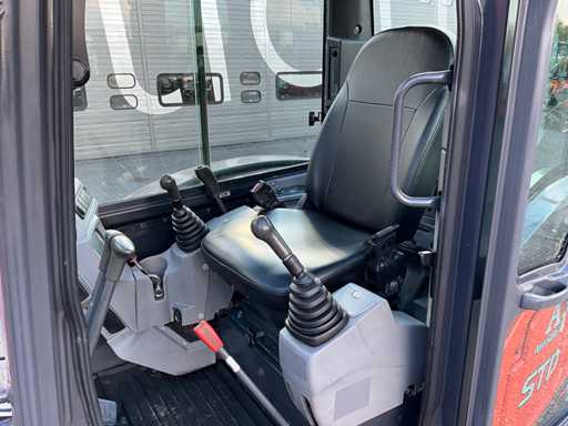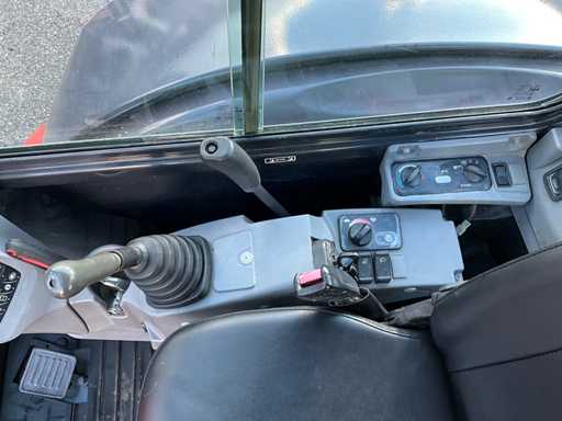 Buldoexcavator cu dinți 700mm, cuplaj rapid mecanic, funcție hidraulică suplimentară, lamă glisantă 1950mm, plăcuțe de cauciuc pe șenile de oțel, ralanti automat nu turează, a 2-a viteză de deplasare