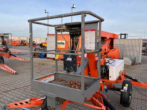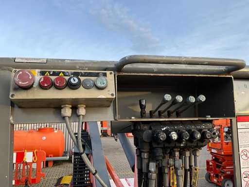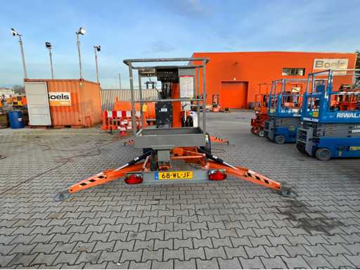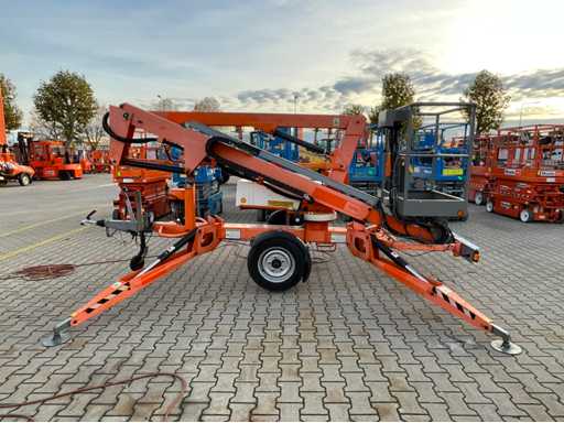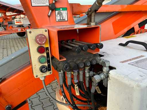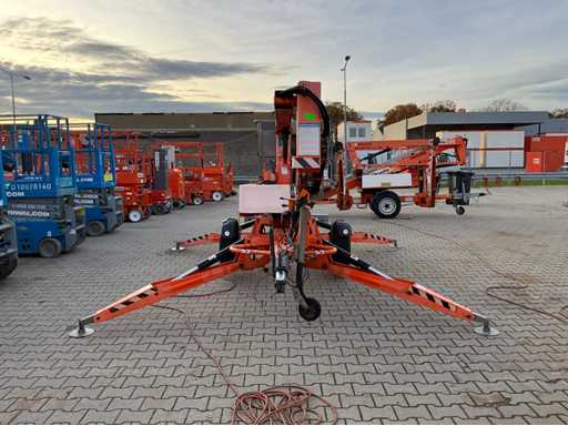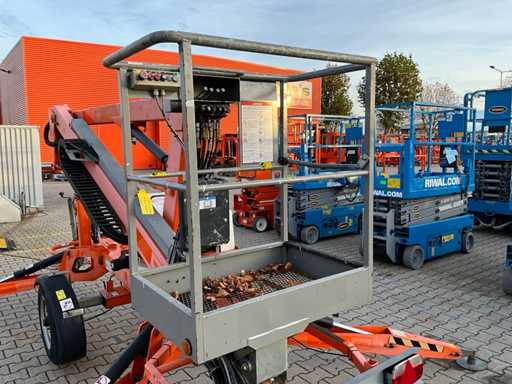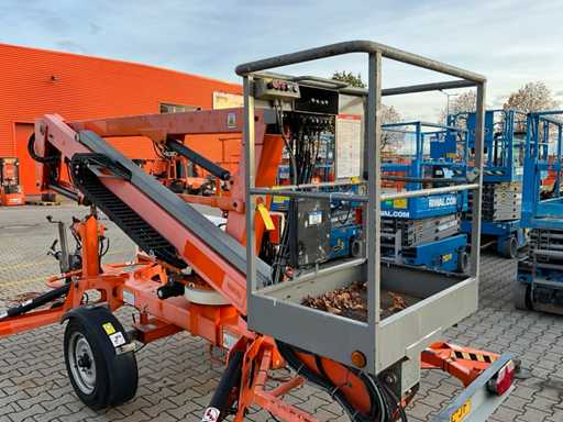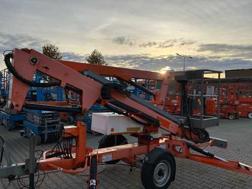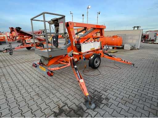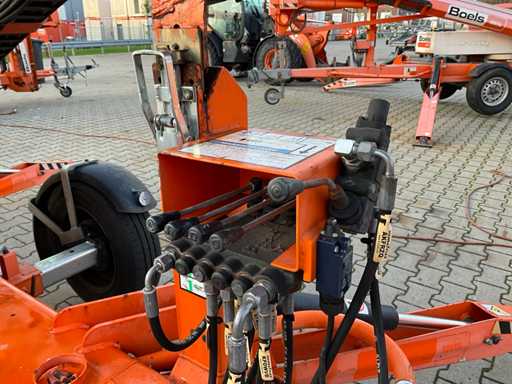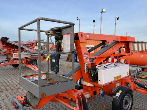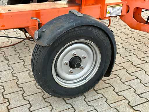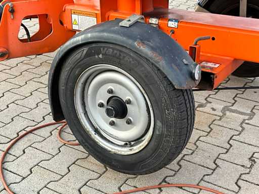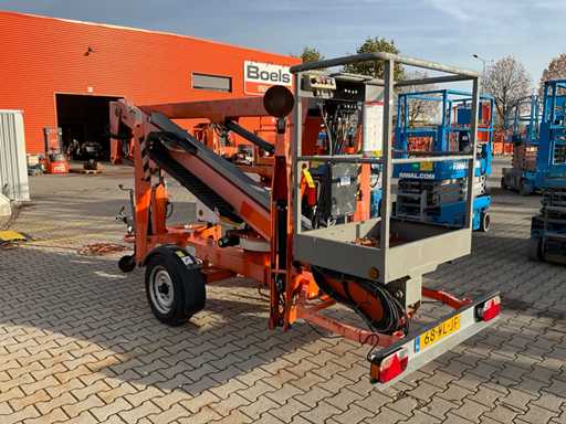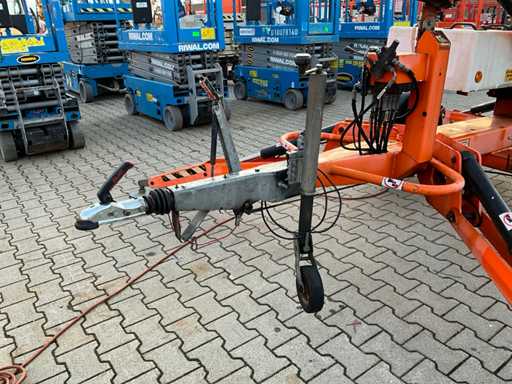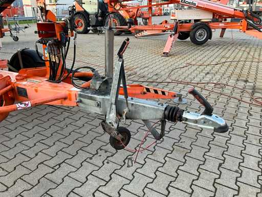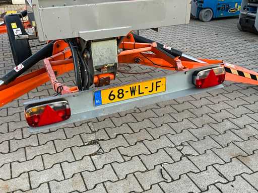 Remorcă cu platformă aeriană telescopică articulată; remorcă cu o singură axă; axa roții reglabilă în lățime; înălțimea podelei platformei 10200 mm; Control electric de 230 volți; controlul cuștii; 4x picior de stabilizare pliabil hidraulic; zona stabilizatorului 3550x3550 mm; frână de inerție; roata jockeyului; numărul șasiului SLN120TACEM028929; cilindru cu scurgeri de ulei; starea de lucru; (cumpărătorul trebuie să furnizeze un număr de înmatriculare valabil atunci când transportă pe cale rutieră; o mufă de conectare cu 7 sau 9 pini sau un adaptor cu cablu (cablul prelungitor poate fi achiziționat local contra cost); eventual bară de lumină suplimentară); documente de înregistrare olandeze; fără certificat de conformitate; (68-WL-JF);