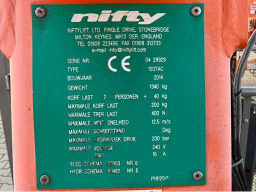 2014 Niftylift Nifty 120 TAC Remorcă cu platformă de lucru aeriană