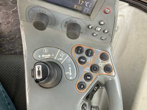 Echipat cu: dispozitiv de marșarier (al 2-lea volan și pedale în partea din spate a cabinei), legătură față, suspensie pe puntea față, 4x supapă spate cu dublă acțiune, senzor de sarcină, sistem de aer, conexiune frână de aer și cârlig inferior (Pitonfix), cuplaj superior reglabil, legătură superioară, control aripă, scaun cu suspensie, scaun încălzit, diferențiator, radio, priză de putere 1000-540e rpm, ad-albastru