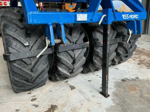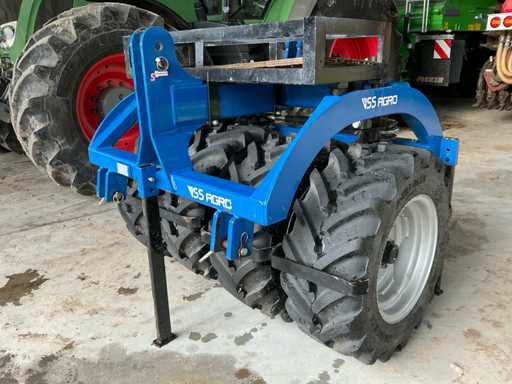 Echipat cu: Cuplaj față, Anvelope noi, 320/65R18 BKT AGRI MAX, VSS Machinebouw BV (VSS Agro) Ambalator frontal VFH, număr de serie 20314003, an de fabricație 2014, greutate 700 kg, rolă față rabatabilă hidraulic cu cambridge sau tăvălug, potrivită pentru tractoare de 80-150 CP, concepută pentru presarea și sfărâmarea solului înainte de însămânțare sau după arat, produsă de VSS Machinebouw BV,