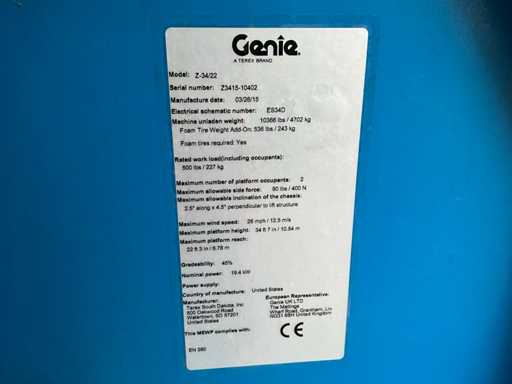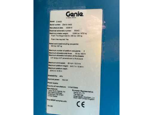2015 Genie Z-34/22 Platformă aeriană 12 metri