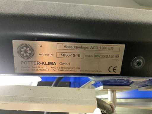 2015 Poetter-Klima PK-FST1000/ACD 1200 Ex/ ACD ULT 1200 Masă de extracție cu sistem de extracție și sistem de filtrare