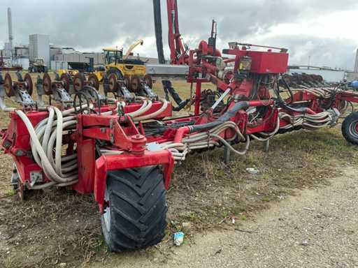 Transportat în 3 puncte, lățime de lucru de aproximativ 12 metri, echipat cu lubrifiere centrală cu grăsime.
