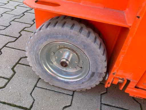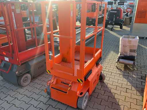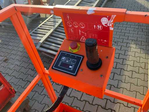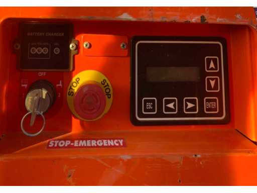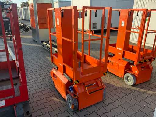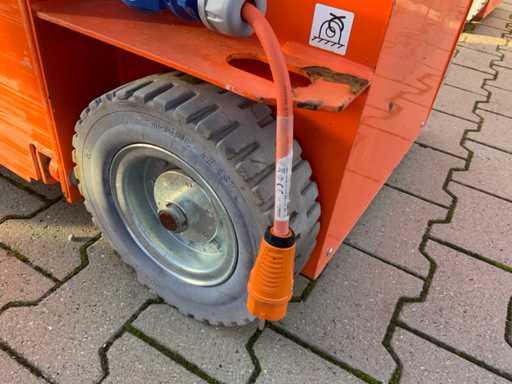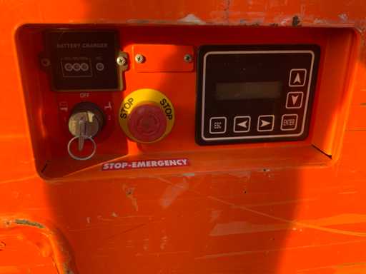 oțel; înălțimea maximă a podelei platformei 2900 mm; controlul cuștii; raft extensibil 1650x600 mm; încărcător de baterie încorporat; 230 volți; fante pentru furci pentru stivuitor; nu funcționează;